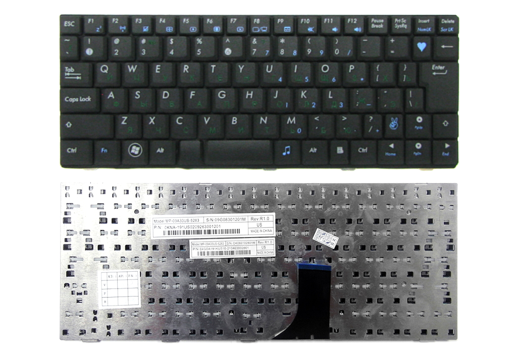 Клавиатура для Asus EeePC 1001 1005 1008 Англ./Рус. Черная