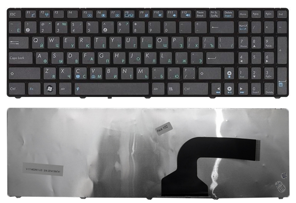 Клавиатура для Asus K52 K53 K54 VX7 G51 G53 G60 G72 G73 A73 UL50 UX50 N61 N60 N71 N73 X61 A52 K73 B53 R503 R704 X54 A54 X55 X52 N53 X73 X75 X77 X64 Англ./Рус. Черная