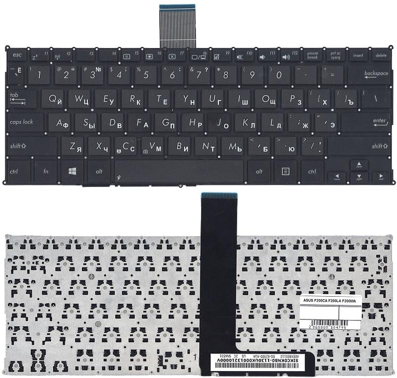 Клавиатура для Asus X200 F200 R202 Без рамки «ENTER»-Маленький Англ./Рус. Черная