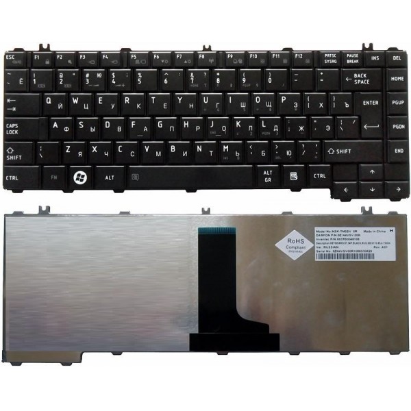 Клавиатура для Toshiba Satellite C640 C645 L630 L635 L640 L645 L705 L730 L735 L740 L740D L745 Англ./Рус. Черная